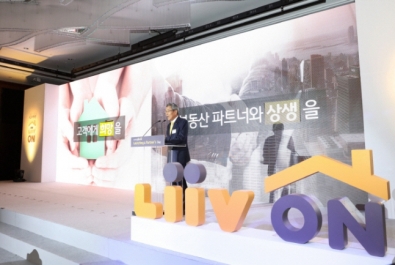 ▲윤종규 KB금융그룹 회장이 지난해 10월 서울 여의도 콘래드호텔에서 열린 ‘KB부동산 Liiv ON’ 브랜드 론칭 기념행사에서 환영사를 하고 있다. 사진제공 KB금융그룹