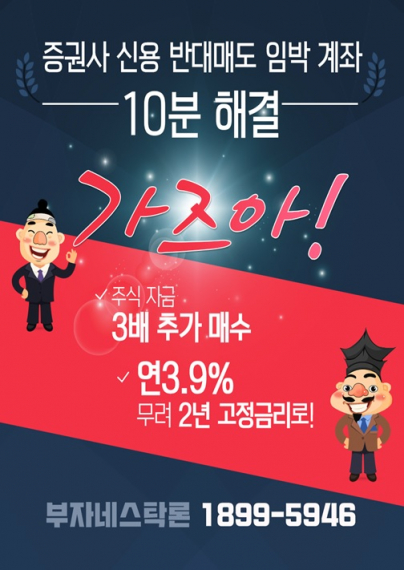 자금이 부족했던 투자자, 스탁론 자체에 대해 아직까지도 망설이고 있는 사람이 있다면, 이제 “부자네 스탁론”이 모든 해답이 되어 줄 것이다. “부자네 스탁론”은 지난 2009년 처음 설립 이래 스탁론 부분 단연 최우수 고객만족도를 한 차례도 잃어 본 적이 없는, 명실공이 국내 최고의 스탁론 기업이다.