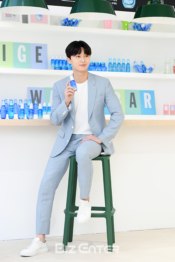 박서준이 22일 오전 서울 서대문구 이화여대길에 위치한 라네즈 워터뱅크 팝업스토어 ‘워터바’ 오픈 행사에 참석해 포즈를 취하고 있다.