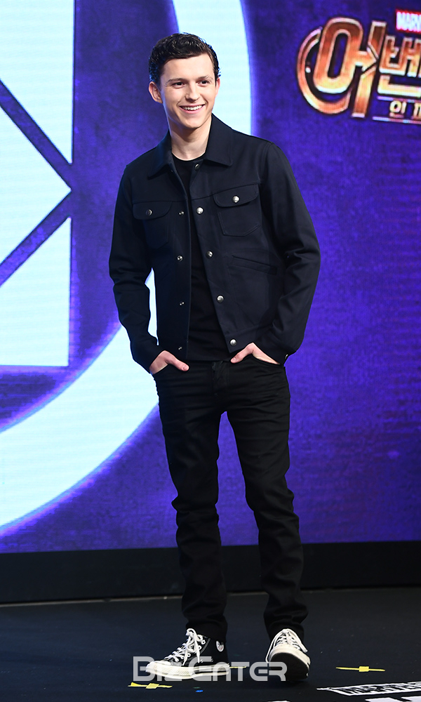 배우 톰 홀랜드가 12일 오전 서울 종로구 포시즌스호텔에서 열린 영화 ‘어벤져스: 인피니티 워’ 내한 기자회견에 참석해 포즈를 취하고 있다.