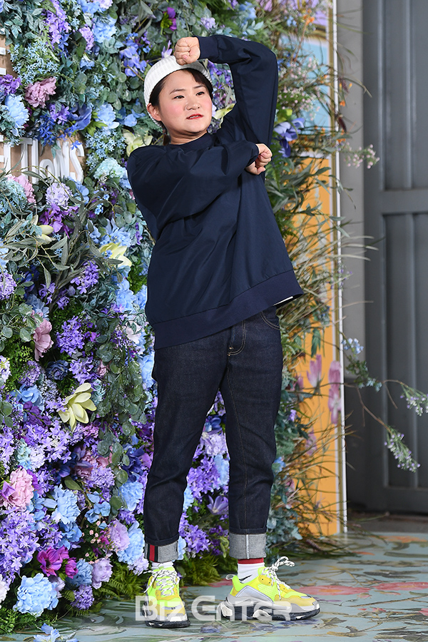 방송인 김신영이 26일 오후 서울 성동구 성수이로 140에서 열린 에이바이봄X하우스오브콜렉션스 전시 기념 행사에 참석해 포즈를 취하고 있다.