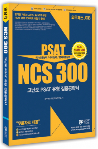 유형 파악이 끝나고 기본기를 갖추게 됐다면, '2018 와우패스JOB NCS 300 고난도 PSAT 유형 집중공략서'를 통해 심화(고난도, 고득점 준비) 과정을 준비하면 된다. PSAT 유형의 언어논리, 자료해석, 상황판단 문제를 NCS 직업기초능력평가 의사소통능력, 수리능력, 문제해결능력의 문제로 구성돼 출제빈도가 높은 영역을 집중 학습할 수 있는 교재이다.