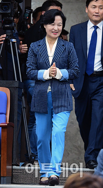 추미애 더불어민주당 대표가 11일 서울 여의도 국회에서 열린 제20대 국회 더불어민주당 3기 신임 원내대표 선출을 위한 의원총회에 참석하고 있다. 고이란 기자 photoeran@