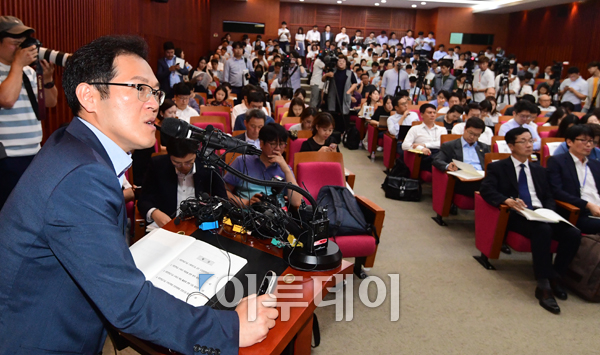 최경일 보건복지부 국민연금재정과장이 17일 서울 여의도 금융투자협회에서 열린 국민연금기금 스튜어드십 코드 도입방안 공청회에서 도입방안을 발표하고 있다. 고이란 기자 photoeran@