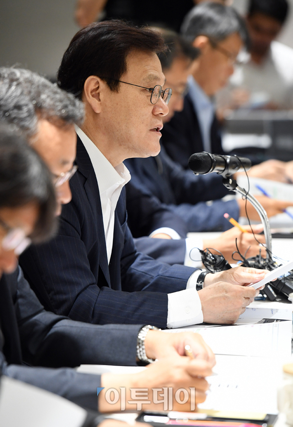 최종구 금융위원장이 23일 오전 경기도 성남시 분당구 카카오 판교오피스에서 열린 '핀테크 활성화를 위한 현장간담회'에 참석해 모두발언을 하고 있다. 이날 최 위원장은 카카오뱅크와 케이뱅크, 핀테크기업 간의 다양한 협업사례를 청취하고, 의견을 나눴다. 오승현 기자 story@