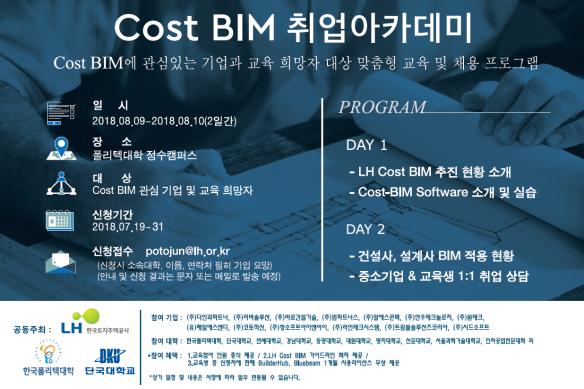 LH 관계자는 "Cost-BIM 확대 적용을 통해 중소기업의 재교육 비용을 절감하고 대학생이 일하면서 배우는 취업환경을 조성하는 등 양질의 일자리 창출을 위해 관계기관과 적극적으로 협력하겠다"고 말했다.
