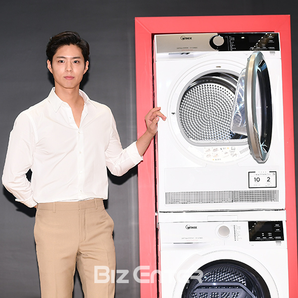 배우 박보검이 11일 오전 서울 종로구 포시즌스호텔에서 열린 위닉스 텀블건조기 신제품 출시 행사에 참석해 포즈를 취하고 있다.