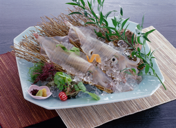 현해탄 바다에서 잡은 싱싱한 오징어로 활어회와 소금구이, 튀김, 딤섬 등을 맛볼 수 있는데, 은은한 단맛이 기운을 북돋아 주는 ‘일본주’과 함께 하면 더욱 좋다.