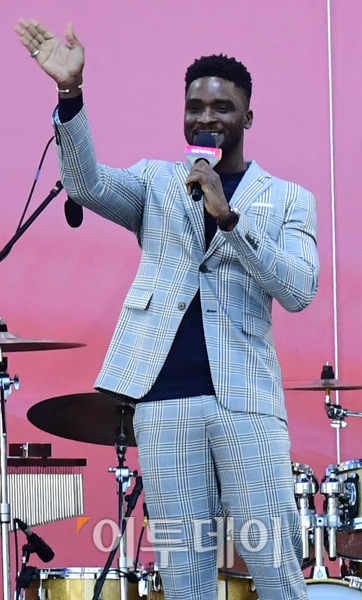 '청춘아레나 2018-그대로 있어도 돼'가 6일 인천 남구 문학경기장에서 열린 가운데 방송인 샘 오취리가 관객들과 대화를 하고 있다. 고이란 기자 photoeran@