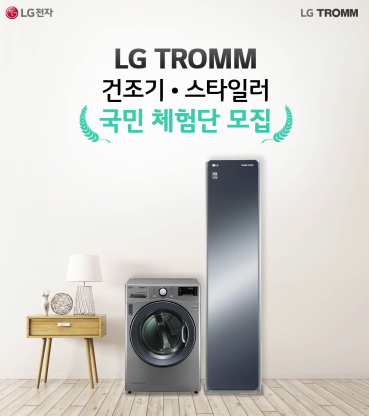 선정된 체험단에게 제공되는 ‘LG TROMM 건조기’는 듀얼 인버터를 탑재해 건조 성능과 에너지 효율을 구현해낸 제품으로, ‘콘덴서 자동세척 시스템’은 강력한 물살이 콘덴서 부분을 자동으로 씻어주므로 고객이 직접 청소할 필요가 없다. 또 ‘LG TROMM 스타일러’는 분당 최대 200회 옷을 흔들어 털어주는 ‘무빙행어’와, 물로 만든 고온의 ‘트루스팀’으로 화학물질을 사용하지 않고도 생활 구김을 줄여주고 옷에 밴 각종 냄새를 없애준다.