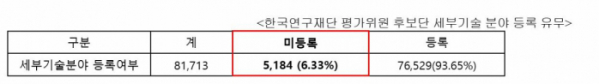 하지만 평가위원 후보단 중 6.3%에 해당하는 5184명이 세부 분야를 등록하지 않은 상태였다고 이 의원은 주장했다. 이 의원에 따르면 세부분야가 등록되어 있지 않은 평가위원 257명이 연구과제 평가에 참석한 경우도 있었다.