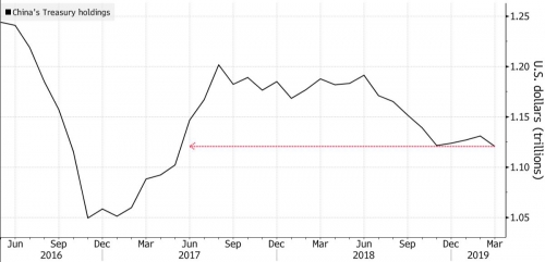 중국은 세계 최대 미국 보유국 지위를 유지하고 있다. 미국 국채를 매각하는 것은 미·중 무역 전쟁이 격화하는 가운데 가능성은 매우 낮지만 중국의 최후 보복 수단으로 여겨지고 있다.