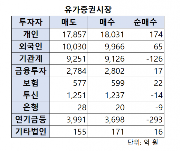 12일, 코스피 개인 순매수 외국인·기관 매도, 코스닥 외국인·개인 순매수 기관 매도 마감
