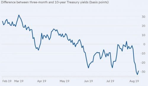 뉴욕증시가 오후 들어 안정을 되찾은 끝에 급락세에서 벗어나면서 일브커브 낙폭도 약 10bp 줄었다. 여전히 계속되는 일드커브 역전은 글로벌 금융시장의 불안을 반영하고 있다고 FT는 강조했다.