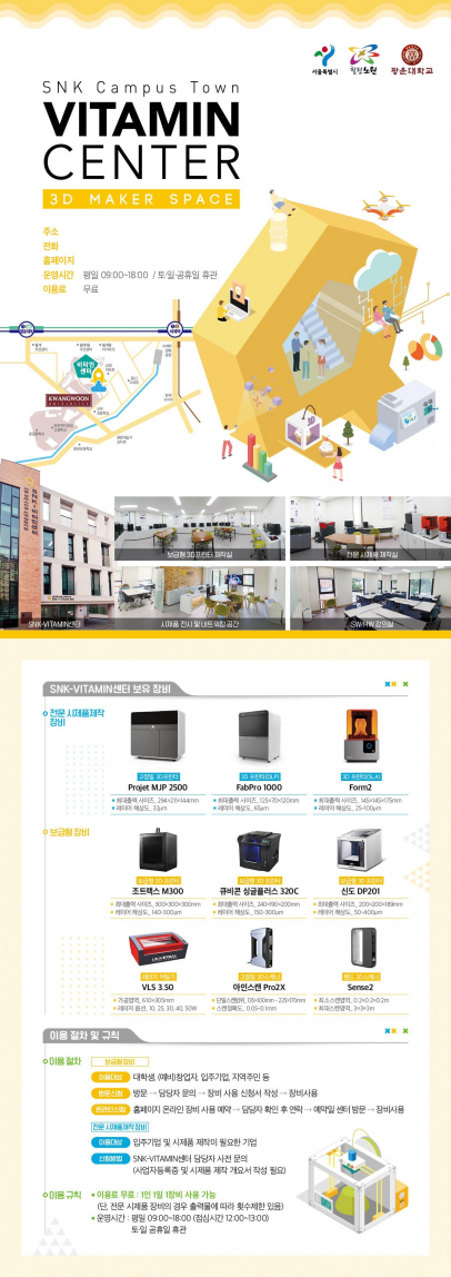 광운대 SNK-VITAMIN센터는 '3D메이커스 시제품 제작소'를 운영하며 3D 프린터 장비를 무료로 대여해준다고 밝혔다.