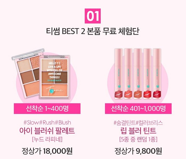 이날 포털을 통해 '아리따움 단독 티썸' 키워드를 찾은 뒤 행사에 참여하는 소비자는 그 순서에 따라 여러 혜택을 누릴 수 있다. 가장 먼저 참여한 이를 시작으로 이들이 공지한 인원수에 따라 1만 8000원 상당, 9800원 상당의 티썸 인기 제품을 공짜로 사용할 수 있는 기회를 얻는다. 이후 인기 제품 공짜 기회를 놓친 이들에게는 이날 하루 사용할 수 있는 1/2 할인권을 지급한다.
