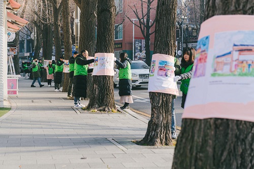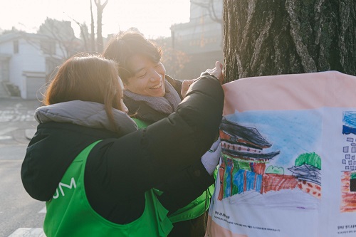 업사이클링 아트 프로젝트 ‘구스 트리허그’는 1월 31일까지 약 한 달간 진행된다. 종로구청에서 장소를 제공하고, 지난 10월 창덕궁 인근 동네 골목길과 주변 문화재 풍경을 주제로 열린 ‘창덕궁 앞 열하나 동네 전국 어린이 사생대회’ 수상작으로 채워지는 민∙관 협력 프로젝트이다. 가로수를 물들이는 아기자기한 작품에서 보이는 아이들의 순수한 동심을 통해 따뜻한 마음으로 연말을 마무리할 수 있을 것이라 기대된다. 삼청로의 고즈넉한 정취와 알록달록한 재생 구스 트리허그의 조화는 연인들을 위한 연말연시 데이트 코스로도 손색없을 것이다.