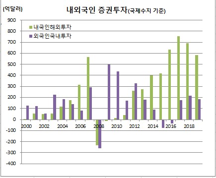 박 팀장은 “미 국채 금리가 충분히 내려가면서 내국인 입장에서는 투자 유인이 줄었기 때문”이라며 “외국인 증권투자는 미중 무역분쟁과 MSGI(모건스탠리캐피털인터내셔널) 지수 변경이 있어 증가세가 제한됐다”고 전했다.