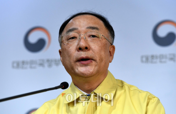 홍남기 부총리 겸 기획재정부 장관이 27일 서울 종로구 정부서울청사에서 마스크 수급 안정관련 브리핑을 갖고 있다.