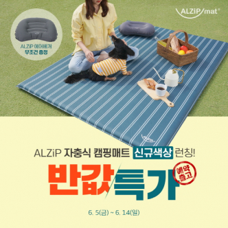 한편, ALZiP 자충식 캠핑매트’ 신규 색상 론칭 이벤트는 6월 5일(금)부터 6월 14일(일)까지 알집매트 홈페이지에서 진행된다.