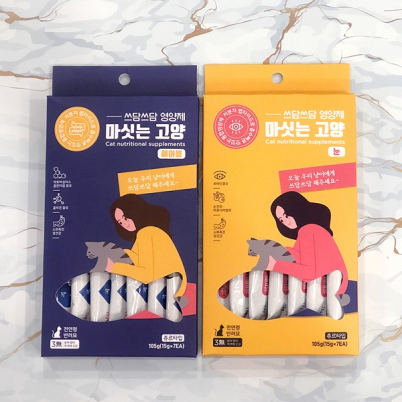 ‘쓰담쓰담 마싯는 고양’은 눈건강 영양제와 헤어볼 장건강 영양제, 관절 영양제, 피부 영양제 총 4종이다. 눈물자국과 노령 고양이의 헤어볼로 인한 장건강 개선에 도움을 주고, 어린 고양이의 발육을 돕는다. 높은 곳에 자주 오르내리거나 눈과 장이 민감하고 약한 고양이를 위해 추천되는 제품이다.