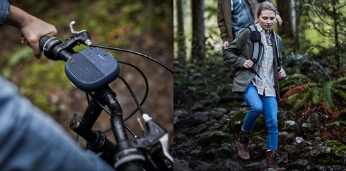 보스(BOSE)의 ‘보스 사운드링크 마이크로(Bose SoundLink Micro)’는 290g의 가벼운 무게로 날씨와 환경에 구애받지 않도록 설계된 제품이다. 부드럽고 견고한 실리콘 러버 외관으로 생활 속 충격에 강해 야외 활동 시 적합하며, IPX7의 완전 방수 등급 덕에 활동 중 예측하지 못한 비에도 걱정할 필요가 없다. 제품의 다목적 스트랩을 활용하면 백팩이나 자전거에 고정할 수 있어 등산 및 라이딩 시 양손 자유롭게 언제 어디서나 간편히 휴대하여 풍부한 중저음의 사운드를 즐길 수 있다. 실제 해당 제품은 많은 라이딩족 사이에서 유용한 블루투스 스피커로 입소문을 타고 있다.