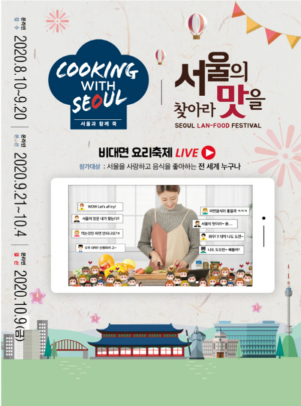 다양한 분야의 전 세계인들과 함께 서울 대표 음식을 개발하는 비대면 요리 문화 축제 '서울과 함께 쿡! 서울의 맛을 찾아라!(Cooking with Seoul)'가 8월 10일부터 온라인 접수를 시작한다.