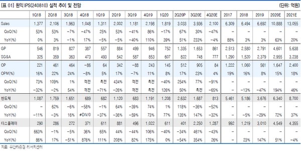 ▲원익IPS 실적 추이 및 전망. (자료제공=유안타증권)