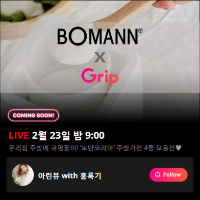 독일 가전 전문 브랜드 ‘보만’이 고객 접점을 보다 확대하기 위해 23일 오후 9시 라이브커머스 플랫폼 ‘그립’에서 라이브 방송을 진행한다고 밝혔다.