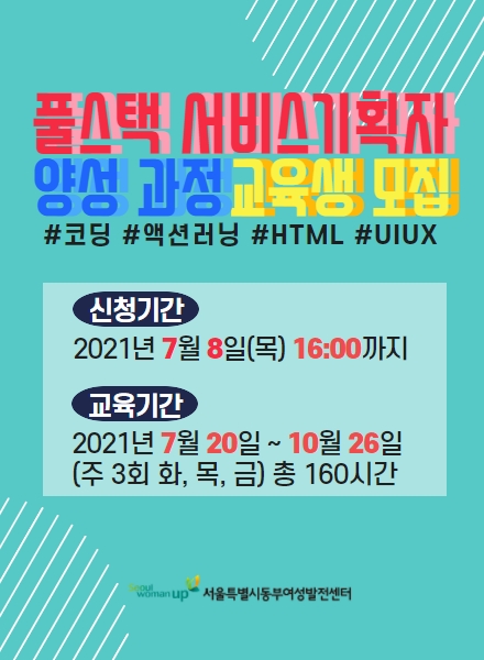 서울시 동부여성발전센터는 ‘풀스택 서비스기획자 양성과정을 개설’하고, 참가자를 모집한다고 25일 밝혔다.