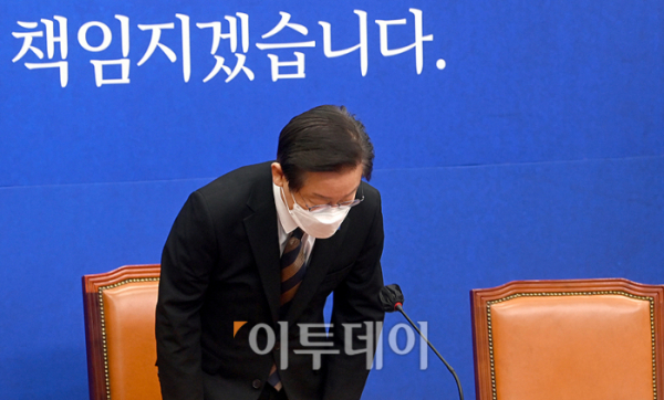 이재명 더불어민주당 대표가 14일 서울 여의도 국회에서 열린 최고위원회의에서 인사를 하고 있다.
