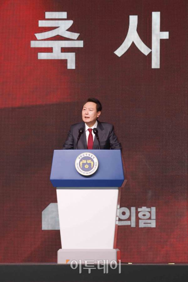[포토] 국민의힘 전당대회에서 축사하는 윤석열 대통령