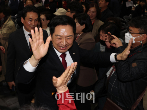 [포토] 당원들과 인사하는 김기현 국민의힘 당대표 후보