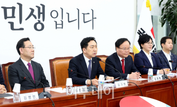 김기현 신임 국민의힘 대표가 9일 서울 여의도 국회에서 열린 최고위원회의에서 모두발언을 하고 있다.