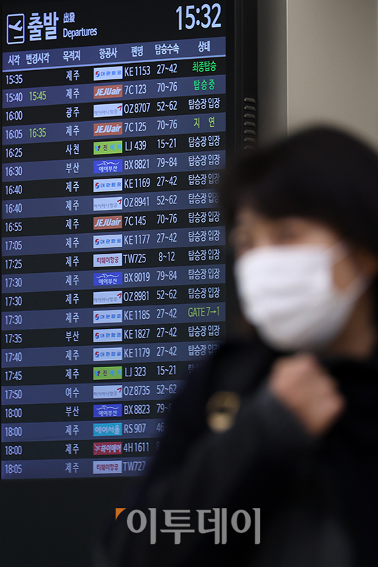 대중교통 수단(노선버스와 철도, 도시철도, 여객선, 전세버스, 택시, 항공기 등)의 마스크 착용 의무 해제를 앞둔 17일 서울 강서구 김포공항에 시민들이 마스크를 쓰고 있다. 실내외 마스크 정책은 오는 20일부터 입소형 감염취약시설과 병의원, 약국 등 극히 일부 장소에만 적용된다.