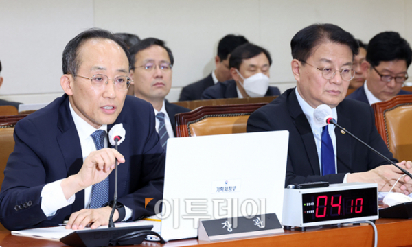 추경호 부총리 겸 기획재정부 장관이 17일 서울 여의도 국회에서 열린 기획재정위원회 전체회의에서 의원들의 질의에 답하고 있다.