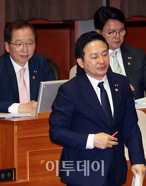 ▲원희룡 국토교통부 장관이 13일 서울 여의도 국회에서 열린 본회의 경제분야 대정부질문에 참석하고 있다. 왼쪽은 조승환 해양수산부 장관. 고이란 기자 photoeran@