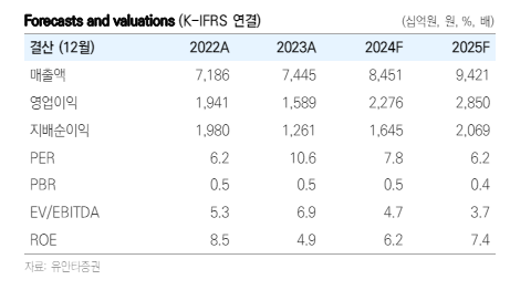 이 연구원은 "1분기 말 기준 5000억 원 규모의 자사주 취득이 약 81% 진행됐다"며 "이르면 3분기 내 완료될 예정으로 소각 가능성도 존재하는 것으로 파악되고 자회사 실적 개선으로 배당금 수익 역시 당초 예상보다 증가할 것으로 전망한다"고 했다.