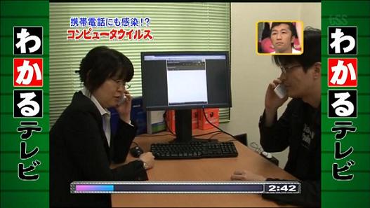 방송에서 안철수연구소 일본 법인은 휴대폰 바이러스의 증상을 설명했다. 사용자 모르게 주소록에 등록된 사람들에게 문자 메시지를 보내거나 개인정보를 빼내기도 하며 심지어는 도청까지 가능하다는 점을 경고했다.
