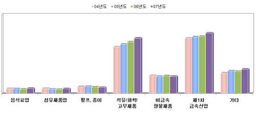한편 2004년 이후 광업·제조업 5인 이상 사업장의 이산화탄소 배출량 연평균 증가율은 약 3.3%인 것으로 조사됐다.