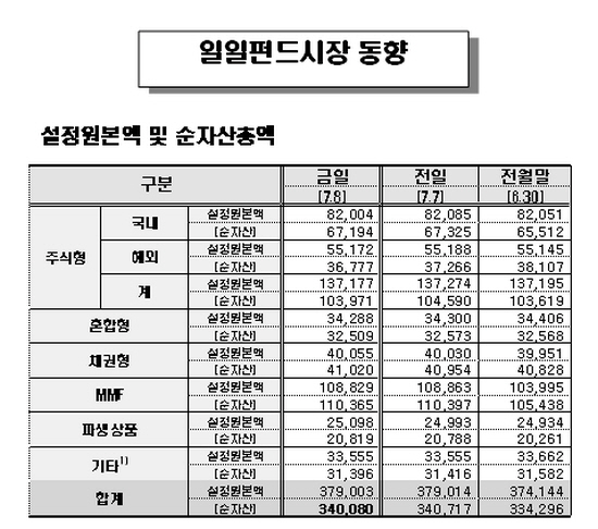 한편 채권형펀드는 전일보다 1050억원 늘어난 40조550억원을 기록했으며 혼합형펀드는 140억원 줄어든 34조2880억원으로 집계됐다.