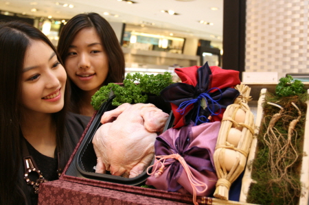 초복세트에는 친환경 농산물만 먹여 사육한 순수 토종닭으로, 갤러리아만 독점적으로 공급받는 '마이산 재래토종닭'과 산양 산삼(장뇌삼), 황기, 둥글레, 가시오가피, 갈근, 대추, 엄나무 등 고급 삼계탕 재료가 함께 세트로 구성되어 있다. 가격은 18만원.