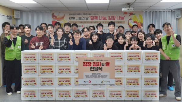 지난 13일 한국경영인증원(KMR)은 ‘나눔의 날’을 맞아 비영리단체 희망조약돌과 함께 영등포구 장애인 사랑 나눔의 집에서 ‘함께 나눔, 김장 나눔’ 행사를 진행했다.