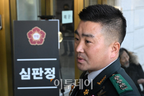 ▲12·3 비상계엄 사태 당시 국회에 투입됐던 707특수임무단을 이끄는 김현태 단장이 6일 서울 종로구 헌법재판소에서 열린 탄핵 심판 6차 변론기일에 증인 출석하며 취재진의 질문에 답하고 있다. 사진공동취재단