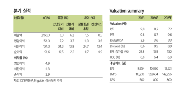 김 연구원은 “매출 성장은 물량 증가와 해상 운임 상승에 힘입은 글로벌 부분이 부문이 주도 했다”며 “이익 개선은 기저 효과와 생산성 개선으로 수익성이 개선된 계약물류(CL) 부문이 견인했다”고 설명했다.