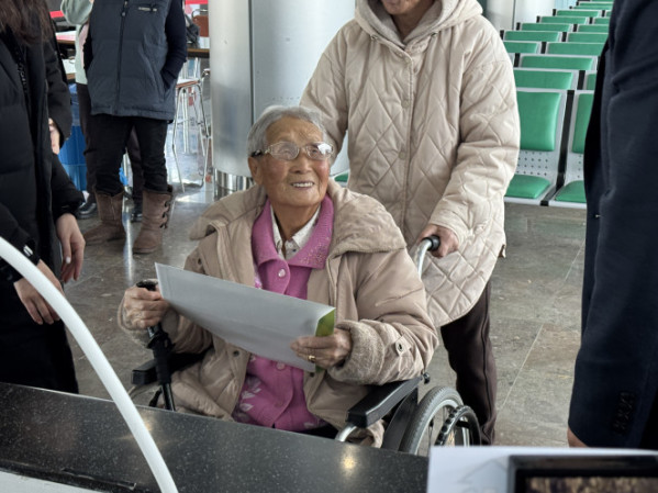 ▲7일 LH 인천지역본부 1층 고객접견실에서 최고령 계약자인 사할린동포 이손귀 어르신이 임대주택 계약체결을 위한 상담 뒤 웃고 있다. (사진제공=LH)