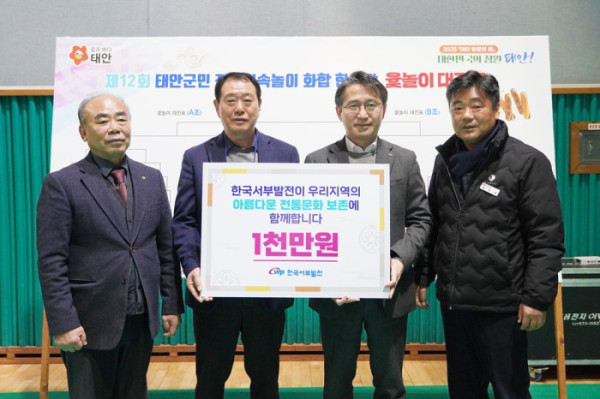 서부발전은 12일 태안 경이정과 태안초등학교에서 진행된 '태안 범군민 중앙대제'와 '전통민속놀이 화합 한마당' 행사를 지원했다. 또 지난달 태안향토문화연구회 지역 기록물인 태안문화 발간도 도왔다.