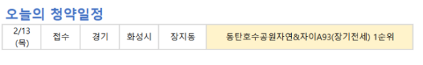 부동산 정보업체 부동산R114에 따르면 13일인 오늘은 경기 화성시 ‘동탄호수공원자연&자이A93’(장기전세) 1순위 청약 접수를 받는다.