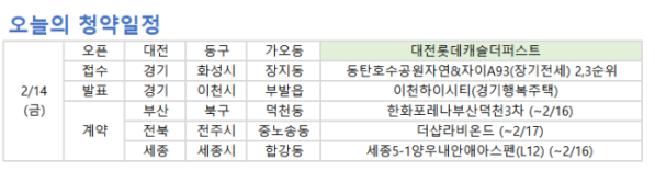 또, 부산 북구 ‘한화포레나부산덕천3차’와 세종 세종시 ‘세종5-1양우내안애아스펜’(L12)의 정당계약이 진행된다. 이달 16일까지다.