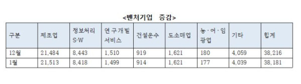 성장을 거듭하던 벤처기업은 지난해 3월부터 꺾이기 시작했다. 12월 들어 97개가 증가하면서 반등하는 모습을 보였으나 다시 하향 곡선을 그리게 됐다.